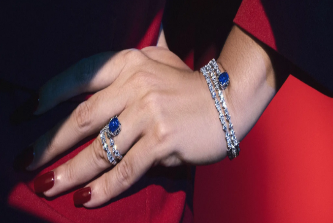 Cincin ini menonjolkan batu safir biru berkualitas tinggi, yang dikelilingi oleh tatanan batu pendamping, yang diatur sedemikian rupa agar bisa menciptakan efek “ledakan” kilauan yang terpancar sempurna. Cincin ini merupakan sebuah statement piece yang dapat mempresentasikan keanggunan, keberanian serta kepercayaan diri seorang wanita modern.